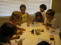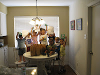 Super Saints met early this week to discuss St. Lawrence. The kids were way more interested in playing today, but they still managed to color a picture, make holy cards and help with making sack lunches for people in need. Saint Lawrence cared for the sick, poor and abandoned. In an effort to show the children how they can help people, we made a sack lunch to deliver to the homeless that we encounter all too often on the streets of Houston. Each child was able to help in some way, whether dropping chips into a bag or making a sandwich. Each family took a couple of bags to deliver. Hopefully, the children will learn how important it is to help everyone and to treat them with respect.