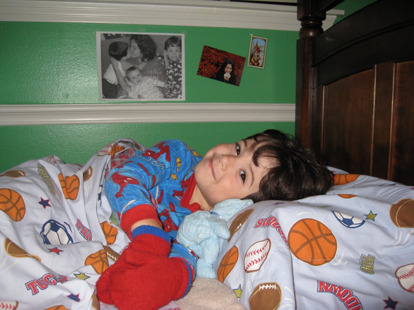 After Lance found me like this earlier, he had a talk with Baby Hulk and Goose about last night. Goose was very clear: he wants to sleep with me and plans to continue to do so. Unable to deal with a wife who wants to sleep all day and is cranky, he told the boys they must sleep in their own beds. Since it was mom they wanted, we thought pictures might help them feel like I’m right next to them. Hopefully, this solution will last.
