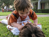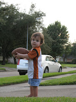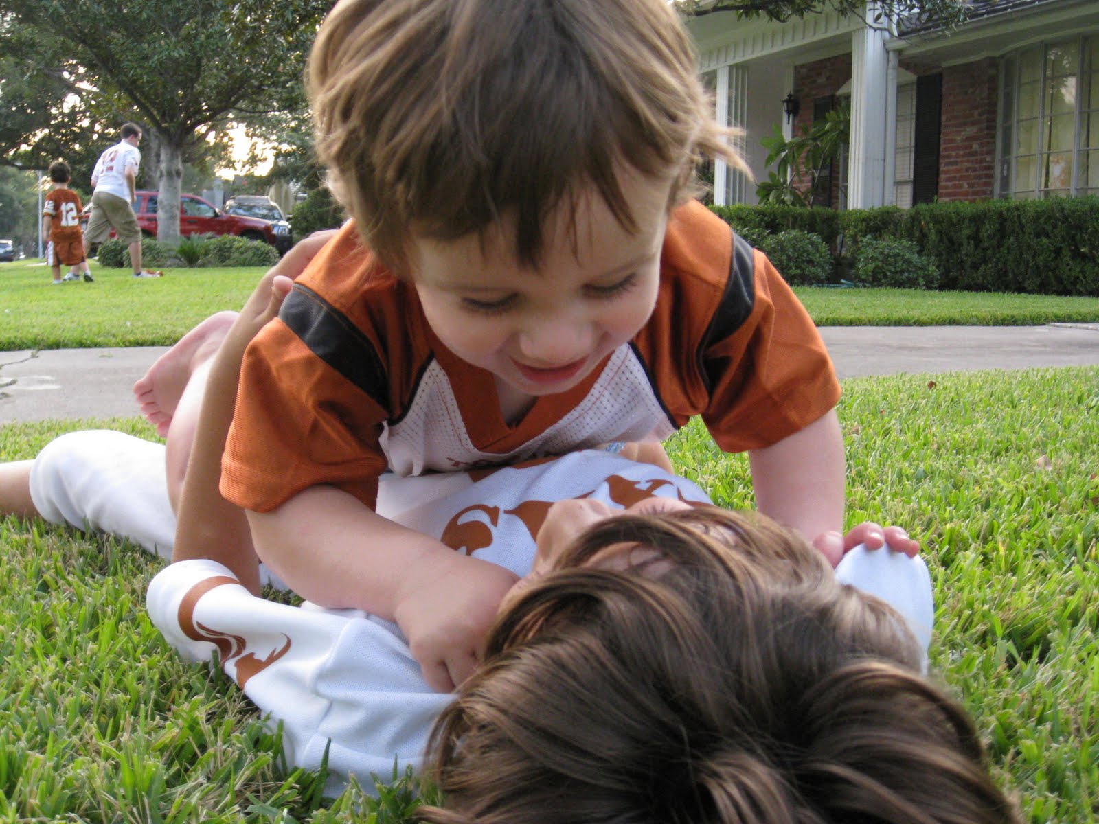 We took the boys to the UT game on Saturday. We had been planning this family event all summer. It would be the Baby Hulk’s first football game. Then Lance didn’t get tickets. I was so upset, but not so upset that I was willing to pay for these tickets. Not to be a total Texas snob, but this was just Rice we were playing. I realized that it would only cost more once we were playing better teams, but I didn’t care. I wasn’t paying for tickets to this game. Finally, Lance came through late Friday night with tickets! So we found a babysitter for the baby and took off.