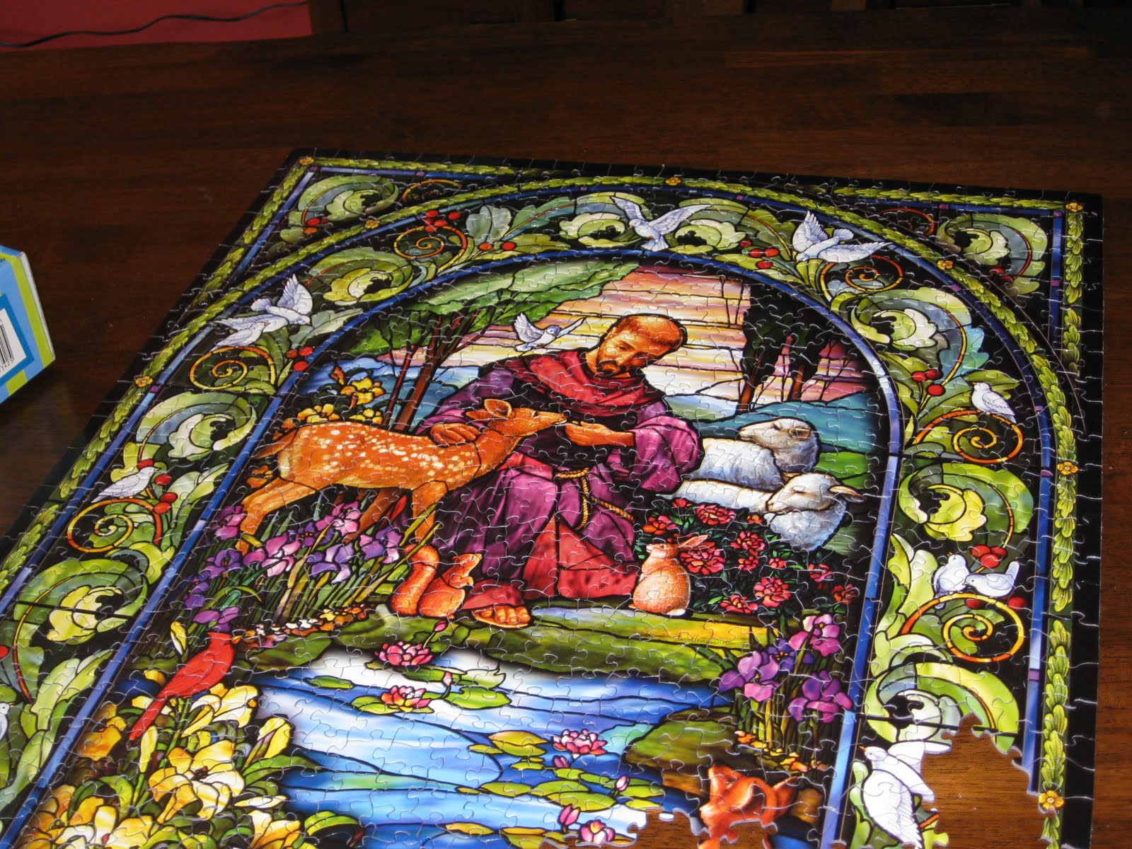 of this puzzle laid out across our dining room table. Despite staying up until 3 am Holy Saturday, I didn’t finish this puzzle until last night. BTW, this puzzle was so flipping hard.
